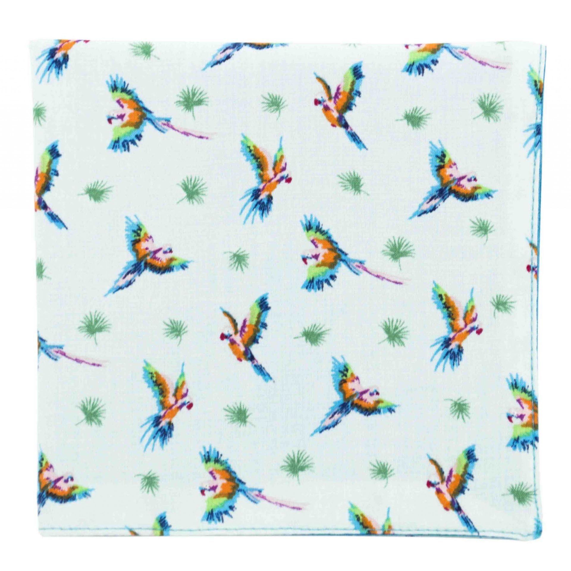 Pochette « Rio » – Perroquets multicolores sur fond bleu ciel