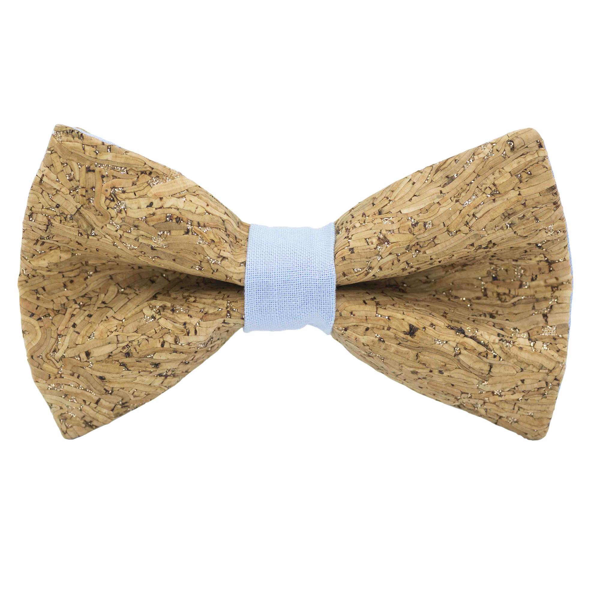 Nœud papillon liège « Merlot » à paillettes argentées – bague bleu ciel