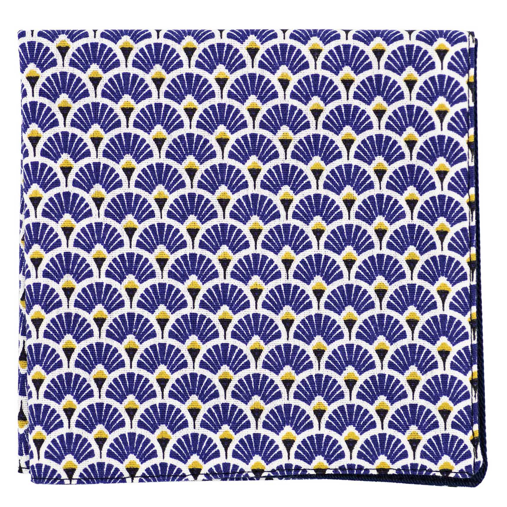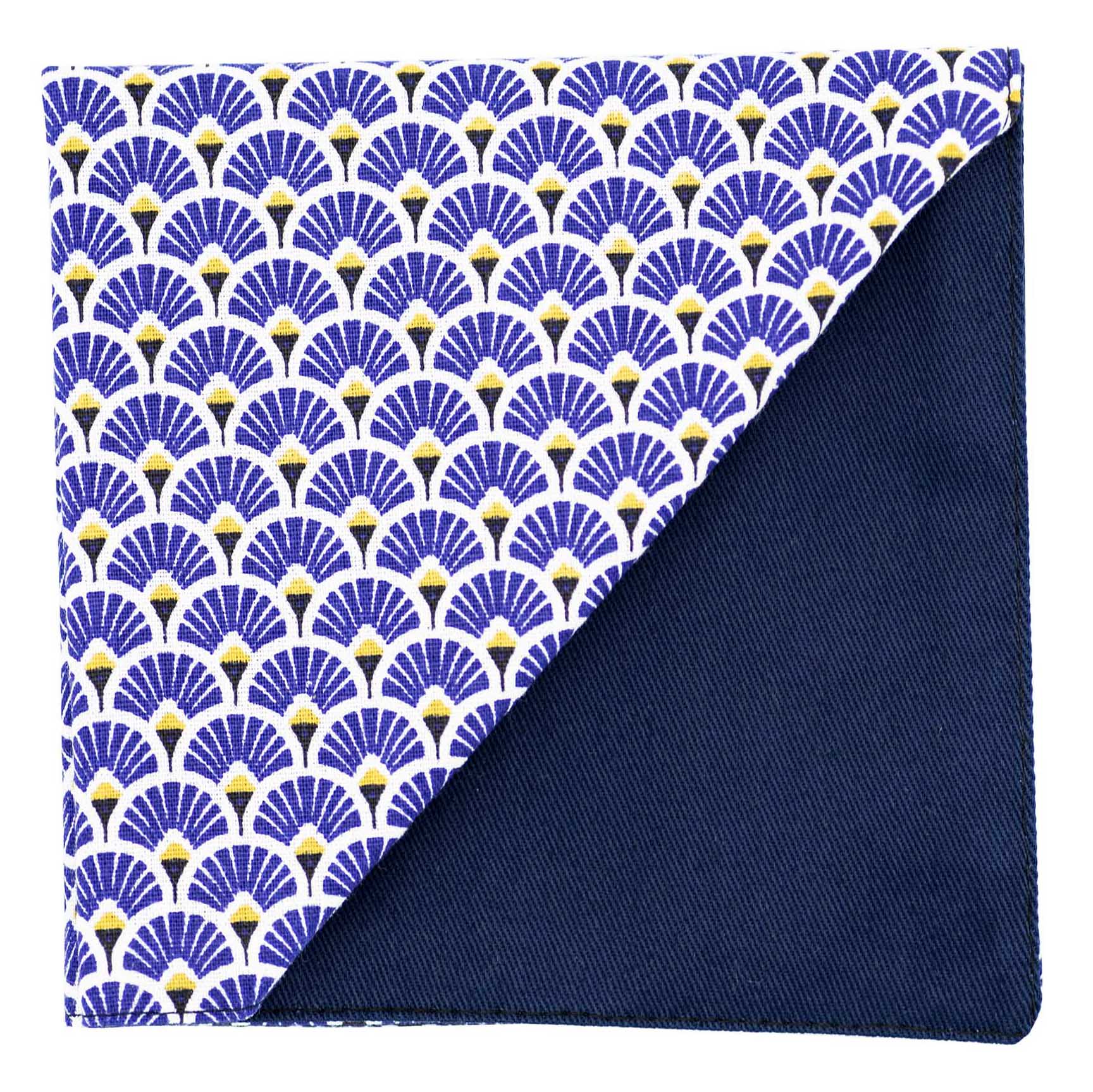 Pochette Japonais « Éventails » bleu indigo