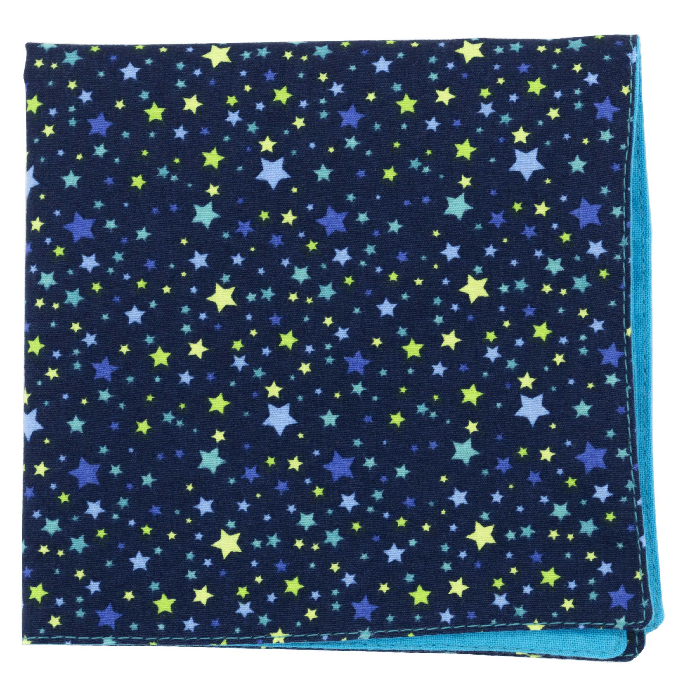 Pochette « Interstellar » – étoiles jaunes, bleues et turquoises sur fond bleu marine